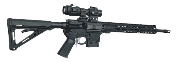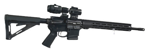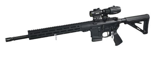 Die halbautomatische AR15 Büchse von Savage glänzt bei der Ausstattung mit Blackhawk Schubschaft und Pistolengriff.